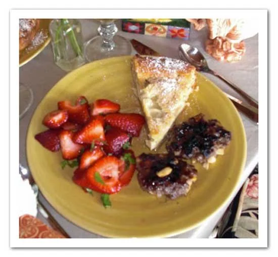 We've used fried apples, strawberries, whipped cream, or syrup.